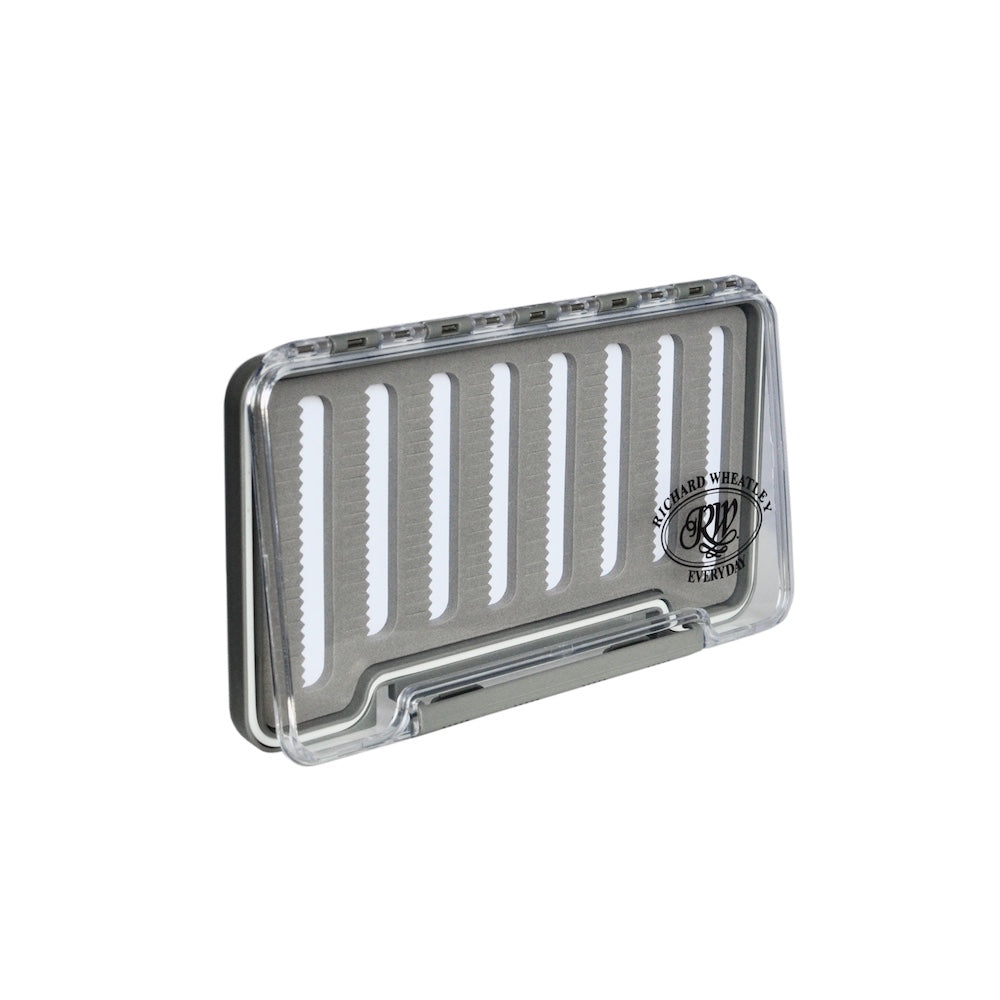 The approximate dimensions of the grey Easy Slot foam box is 147mm x 103mm x 14mm (L x W x D) and it holds up to 138 flies.